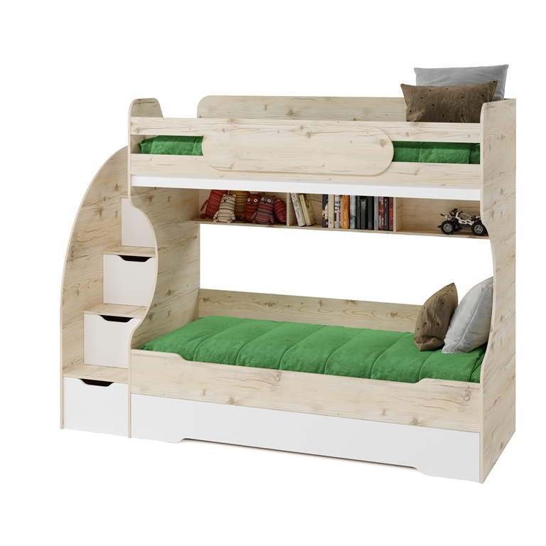 Увеличенное, просторное нижнее спальное место позволяет комфортно разместиться ребенку вместе со взрослым.