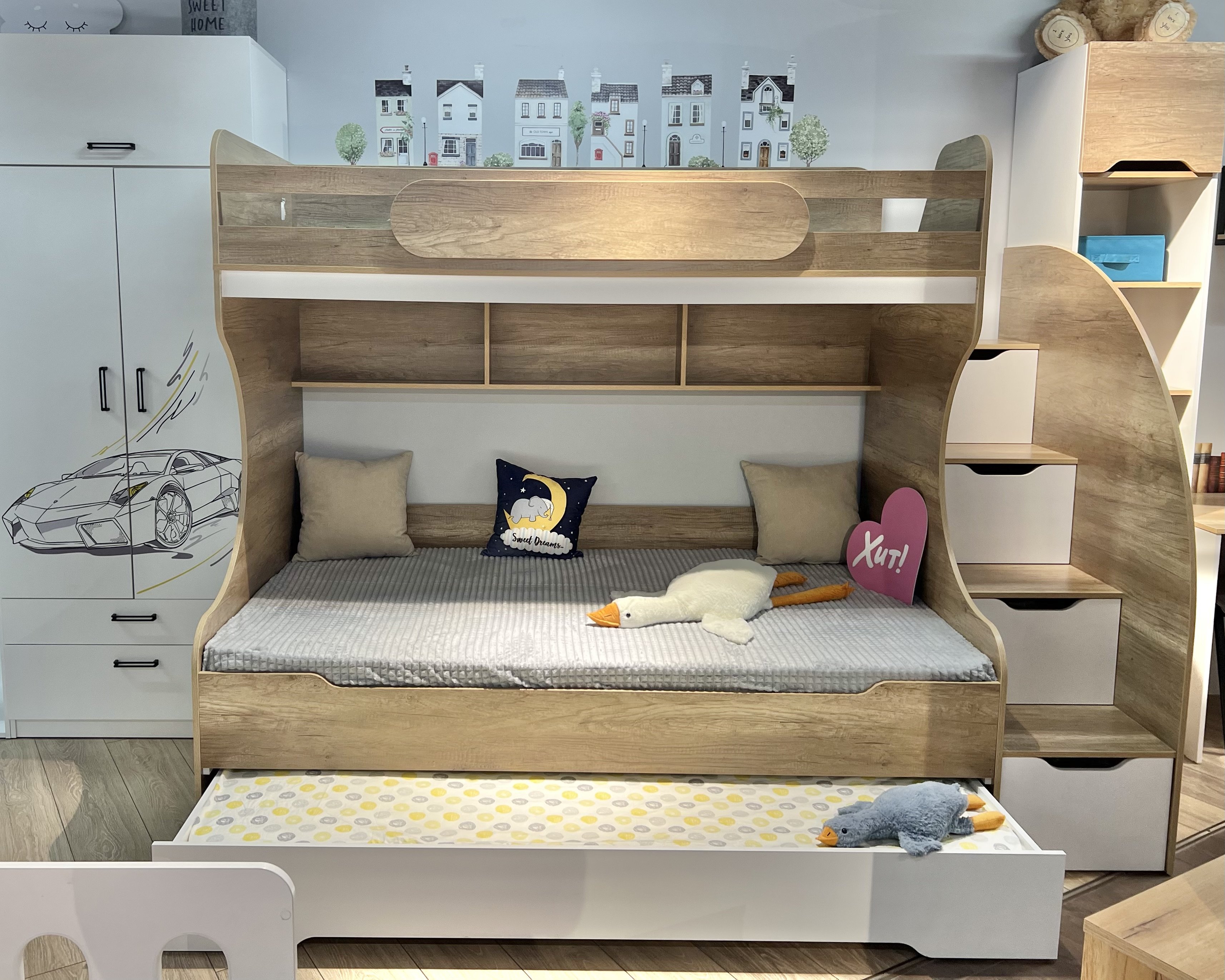 Увеличенное, просторное нижнее спальное место позволяет комфортно разместиться ребенку вместе со взрослым.